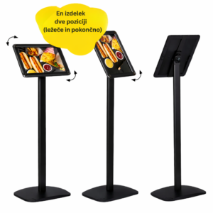 Dekorativno info stojalo A4 (210×297 mm) – profesionalna rešitev za prikaz informacij, menijev ali obvestil. Stabilno, elegantno in enostavno za uporabo.